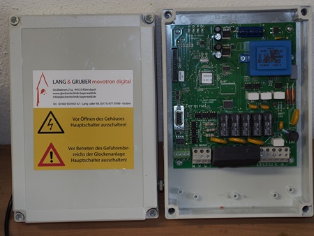 Mit dem von uns verwendeten elektronischen Regelungssystem „Movotron“ des weltweit führenden Herstellers „Clock-O-Matic“ erhalten Sie eine hochmoderne und zuverlässige Glockensteuerung, die bereits mit der ersten Generation in den 90er Jahren Maßstäbe setzen konnte. Mit der aktuellen und mittlerweile dritten Generation liefern wir eine hochentwickelte Glockensteuerung, die durch eine Vielzahl von innovativen Techniken wie Sanftanlauf, Sanftbremse, Drehmomenteinstellung, präzise und selbstlernende Regelung etc., besticht. In Verbindung mit unseren Glockenantrieben erhalten Sie eine genau auf Ihre Anlage zugeschnittene Lösung, die maßgeblich zu einem schoneneden und harmonischen Läuten Ihrer wertvollen Glocken beiträgt.
